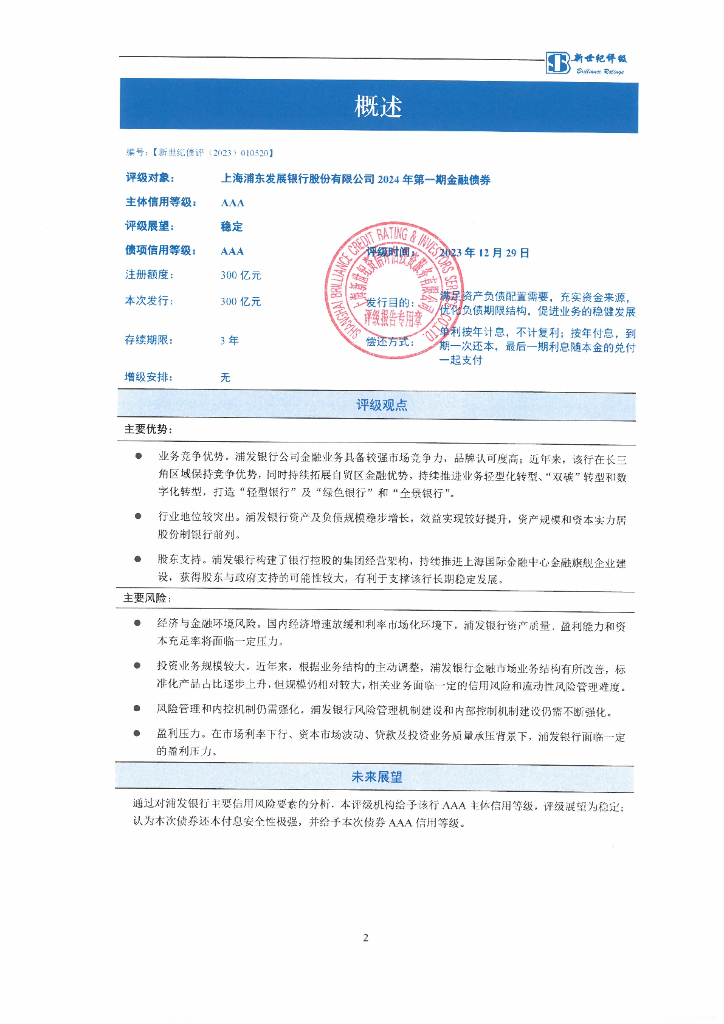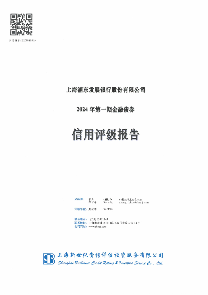新世纪:上海浦东发展银行股份有限公司2024年第一期金融债券信用评级报告及跟踪评级安排说明.pdf