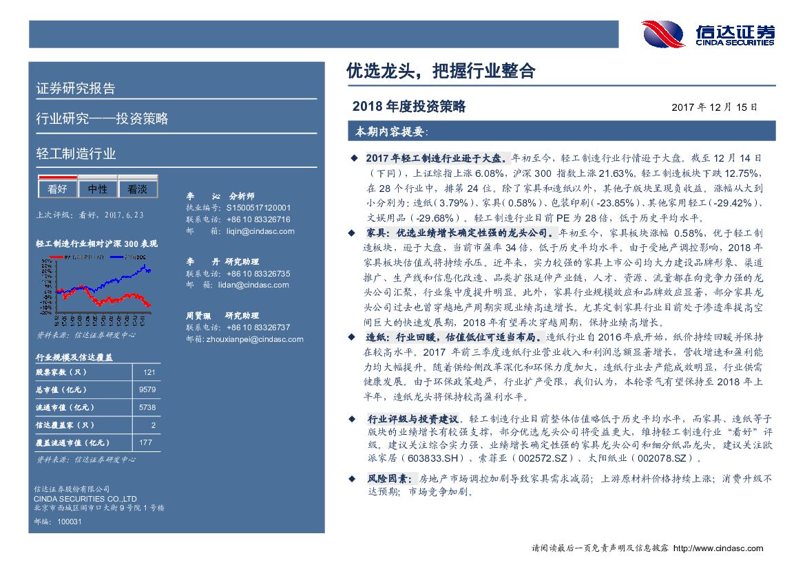 信达证券:轻工制造行业2018年度投资策略:优选龙头,把握行业整合.pdf