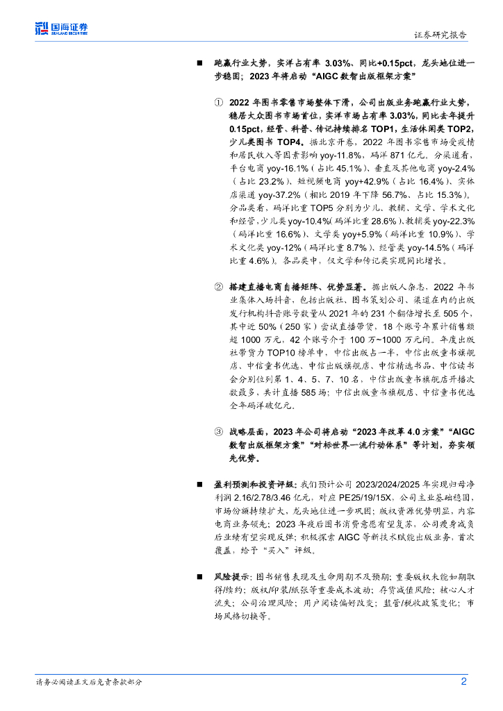 国海证券:中信出版(300788)-2022年年报点评:占有率逆势提升、“瘦身健体”轻装上阵;直播电商先发布局,AIGC布局提升至战略高度.pdf