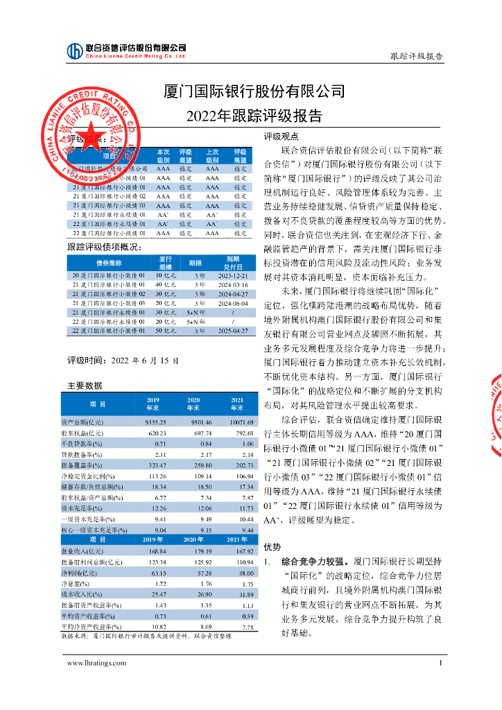 联合资信:厦门国际银行股份有限公司2022年跟踪评级报告.pdf