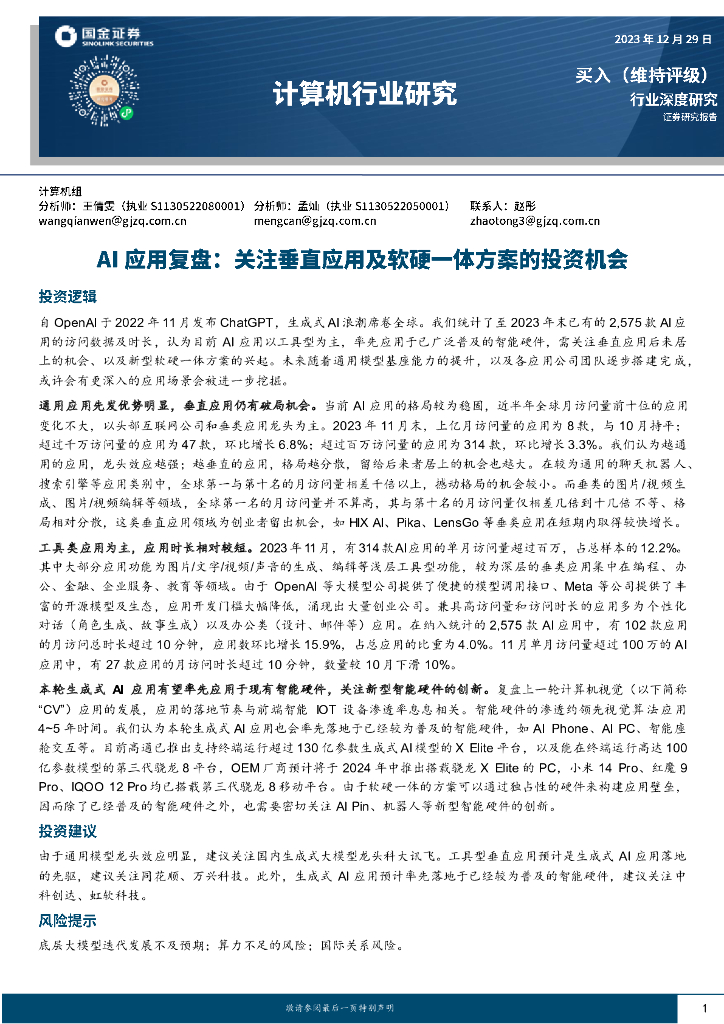 国金证券:计算机行业深度研究:AI应用复盘:关注垂直应用及软硬一体方案的投资机会.pdf