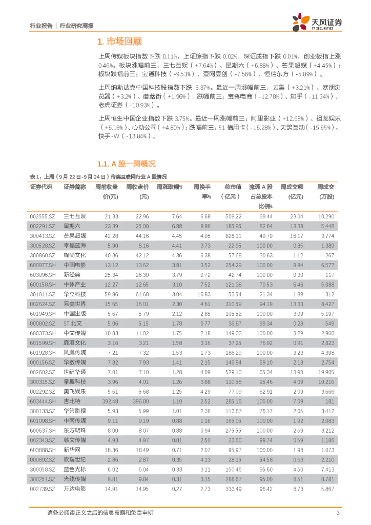 天风证券:传媒一周观点:孟回国有望提振情绪,持续关注三季报核心如东财等,及电商双十一预热.pdf