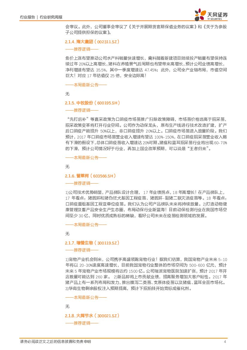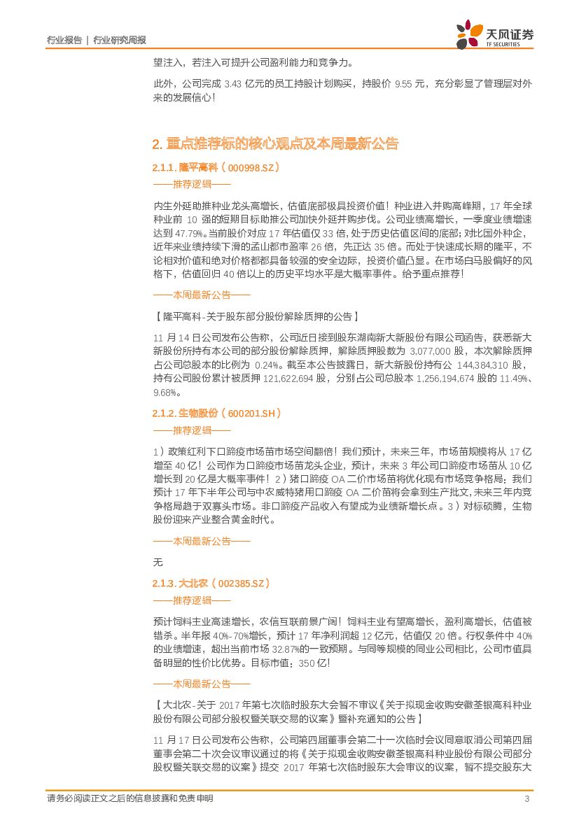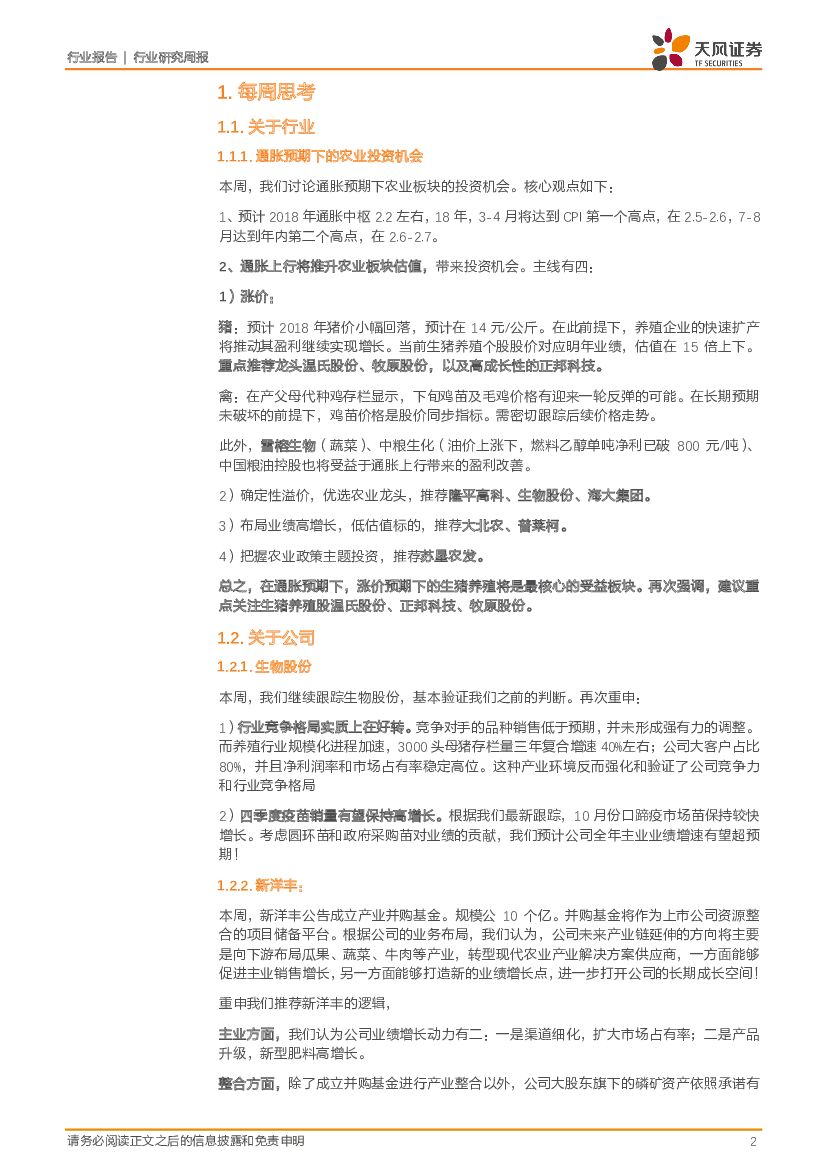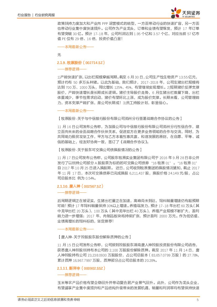 天风证券:农林牧渔2017年第47周周报:通胀预期渐起,首推生猪养殖;优选龙头和低估值标的!.pdf