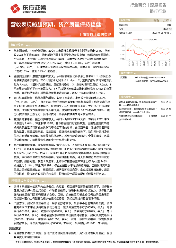 东方证券:上市银行1季报综述:营收表现略超预期,资产质量保持稳健.pdf
