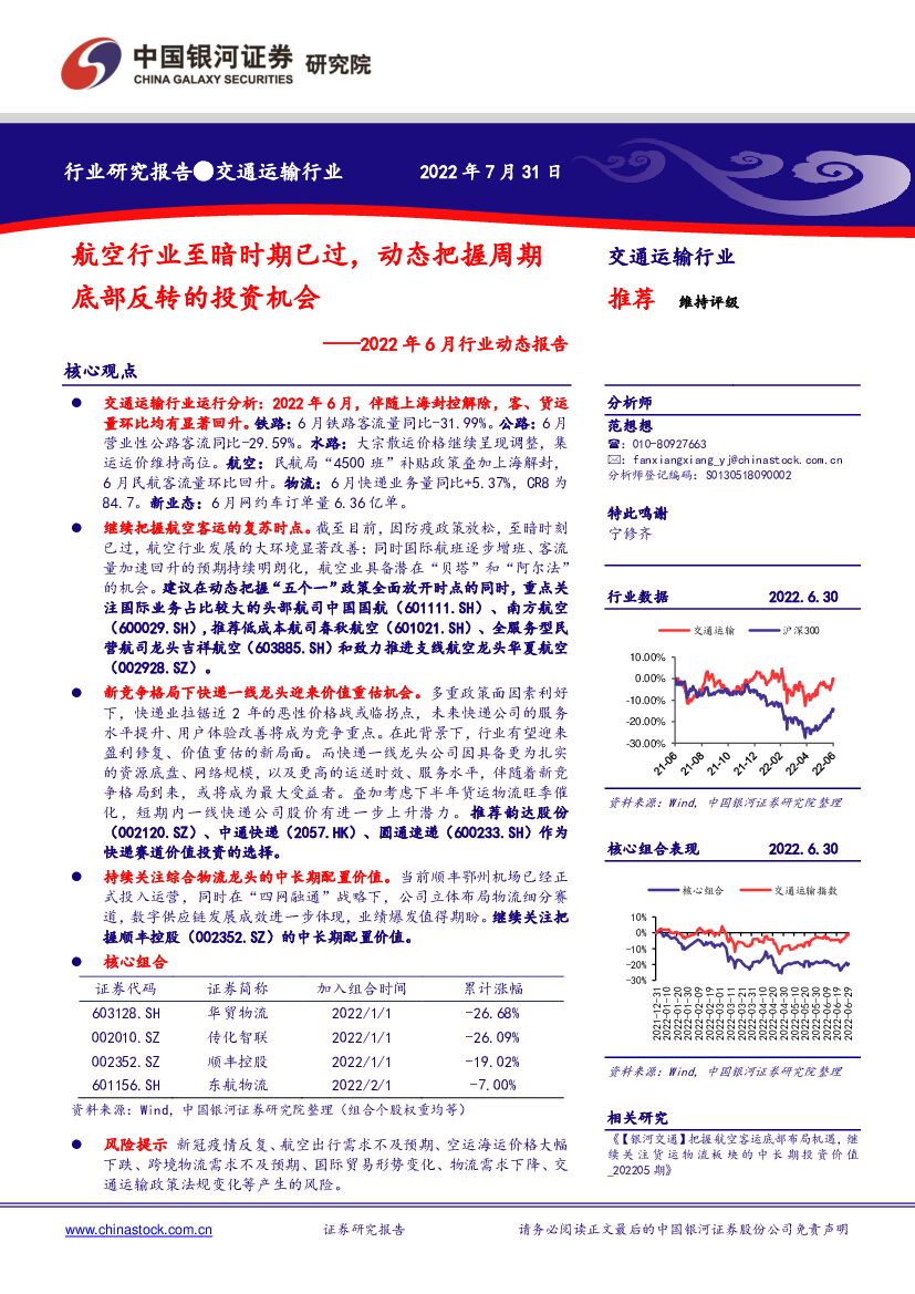 中国银河:交通运输行业:2022年6月行业动态报告-航空行业至暗时期已过,动态把握周期底部反转的投资机会.pdf