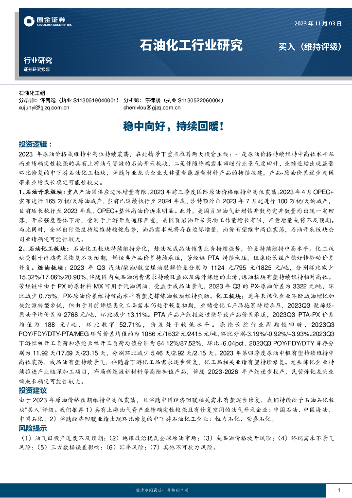 国金证券:石油化工行业研究:稳中向好,持续回暖!.pdf