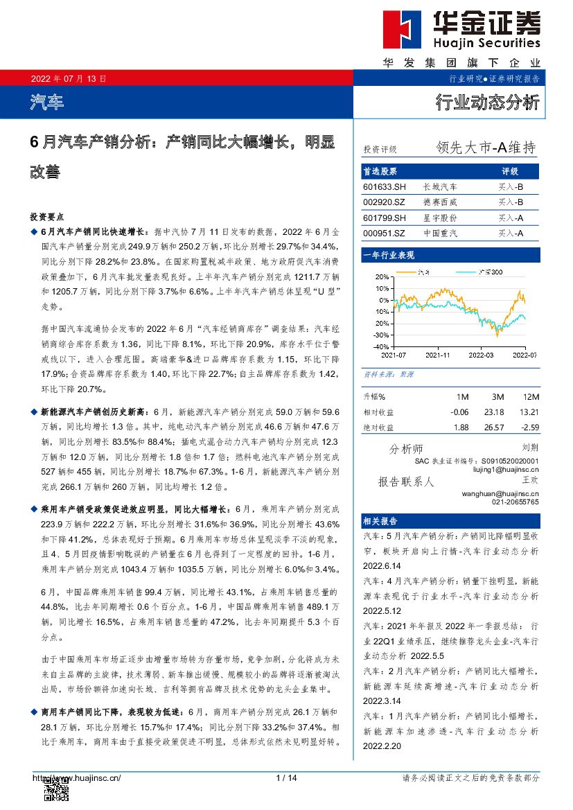 华金证券:汽车行业动态分析:6月汽车产销分析:产销同比大幅增长,明显改善.pdf