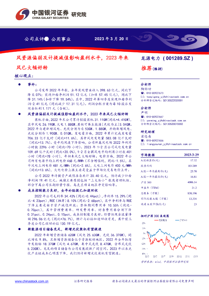 中国银河:龙源电力(001289)-风资源偏弱及计提减值影响盈利水平,2023年来风已大幅好转.pdf