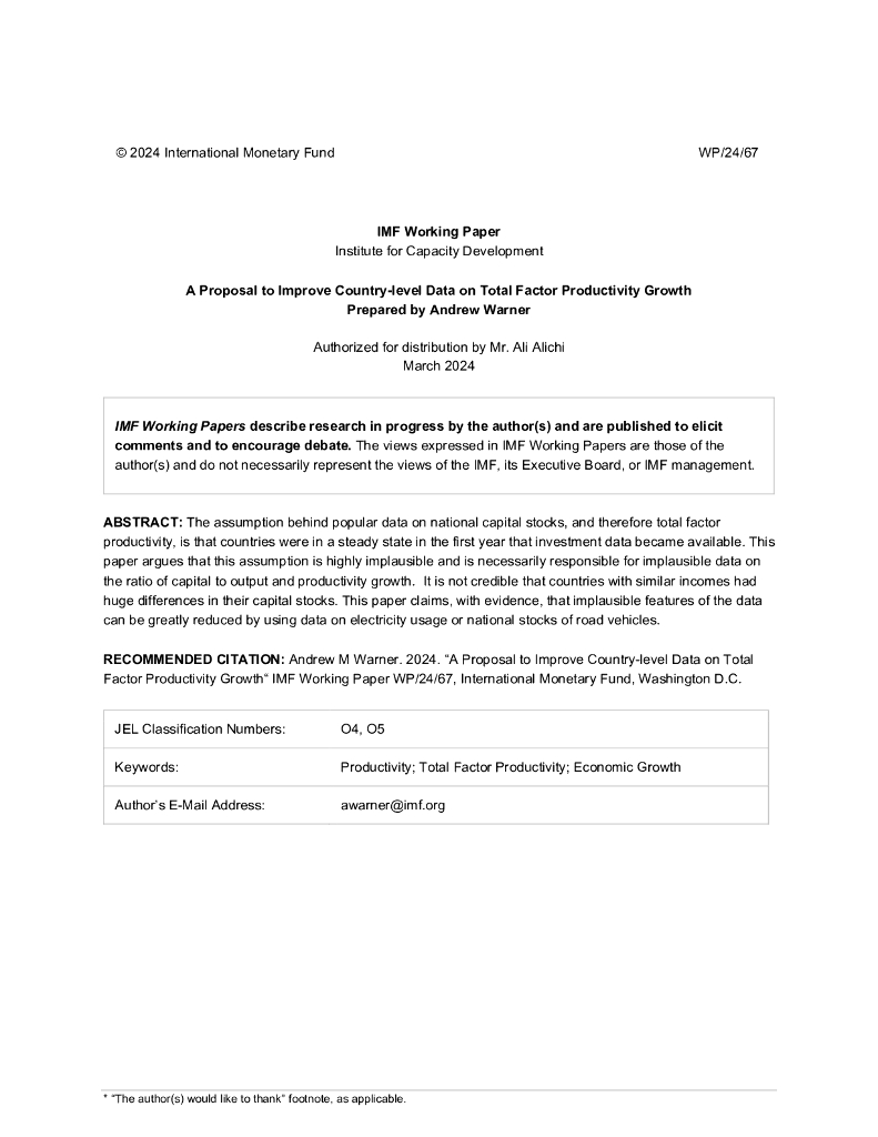 国际货币基金组织:2024关于改进国家级全要素生产率增长数据的建议报告(英文版).pdf