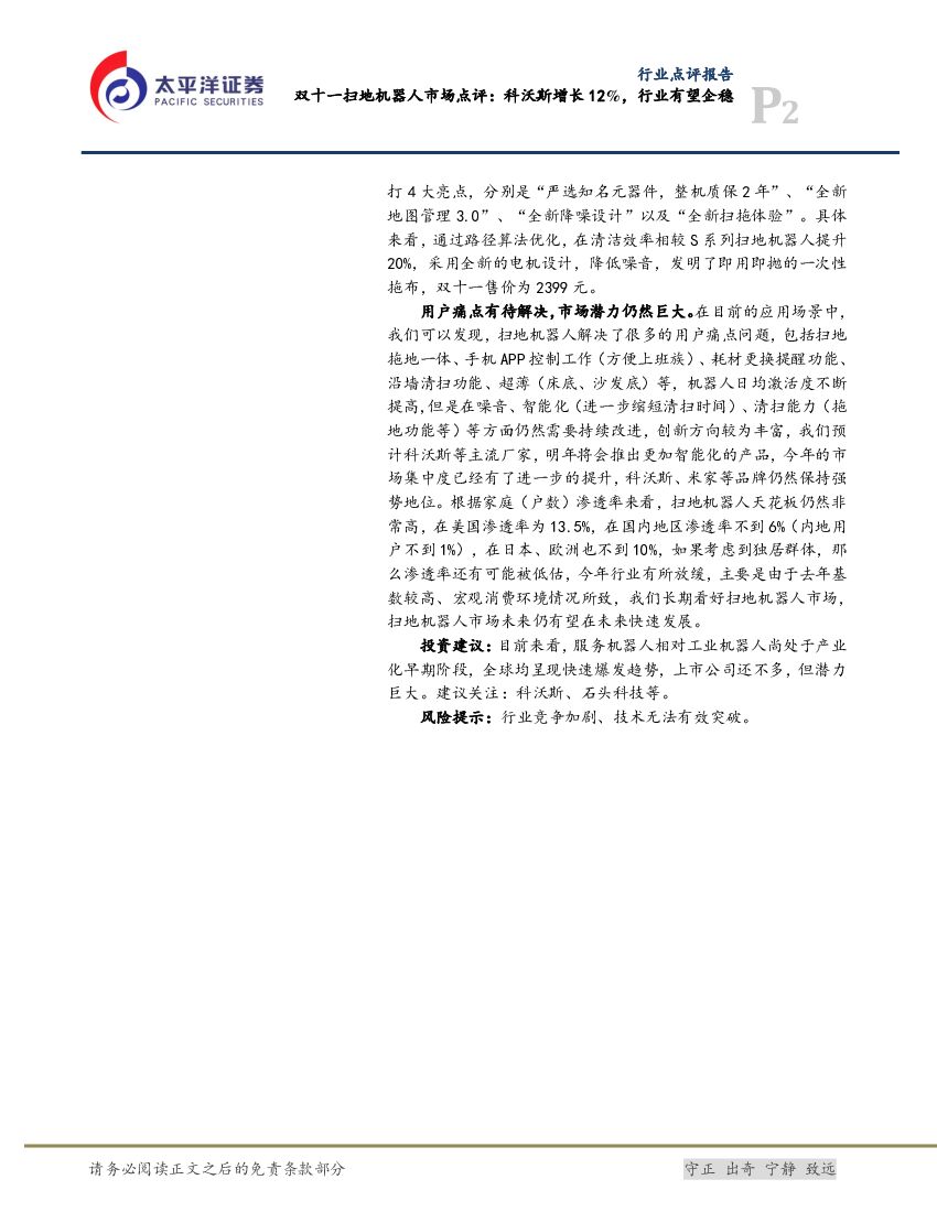 太平洋证券:机械行业点评报告:双十一扫地机器人市场点评:科沃斯增长12%,行业有望企稳.pdf