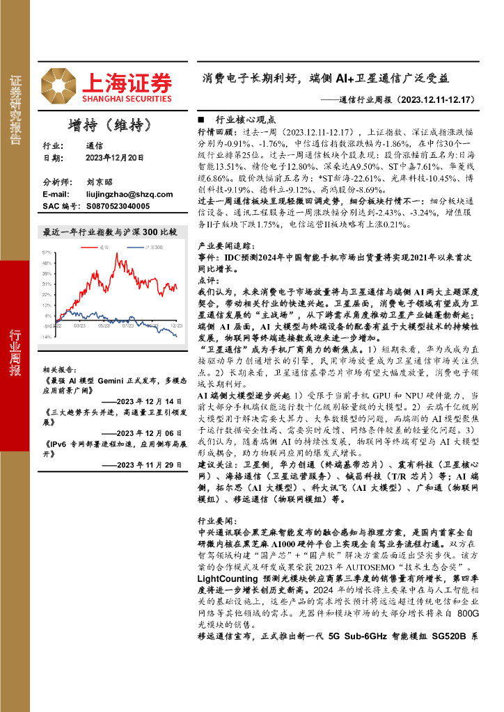上海证券:通信行业周报:消费电子长期利好,端侧AI+卫星通信广泛受益.pdf