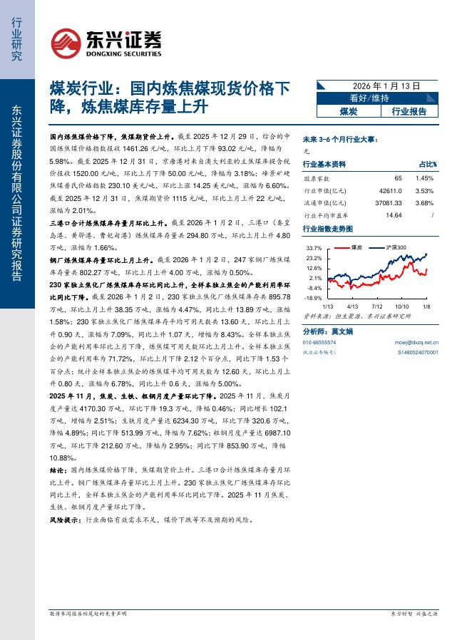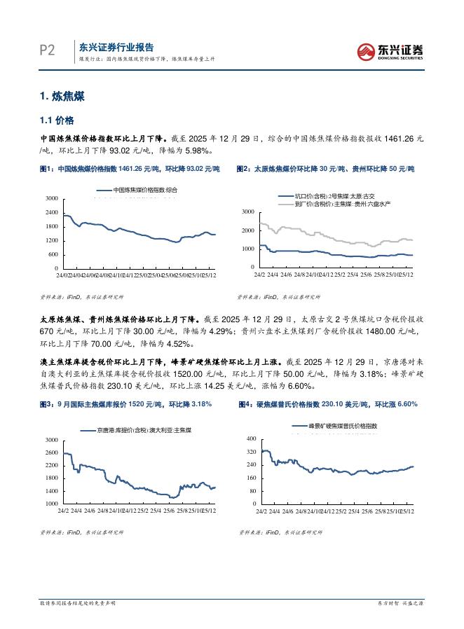 东兴证券:煤炭行业:国内炼焦煤现货价格下降,炼焦煤库存量上升.pdf