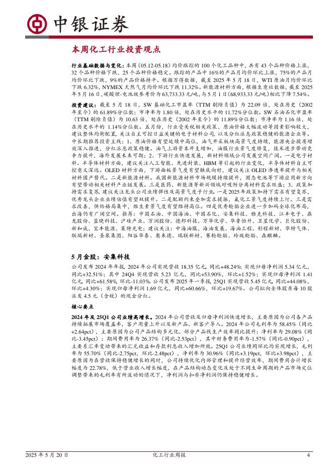 中银证券:化工行业周报:国际油价、MDI、涤纶短纤价格上涨,海外天然气价格下跌.pdf