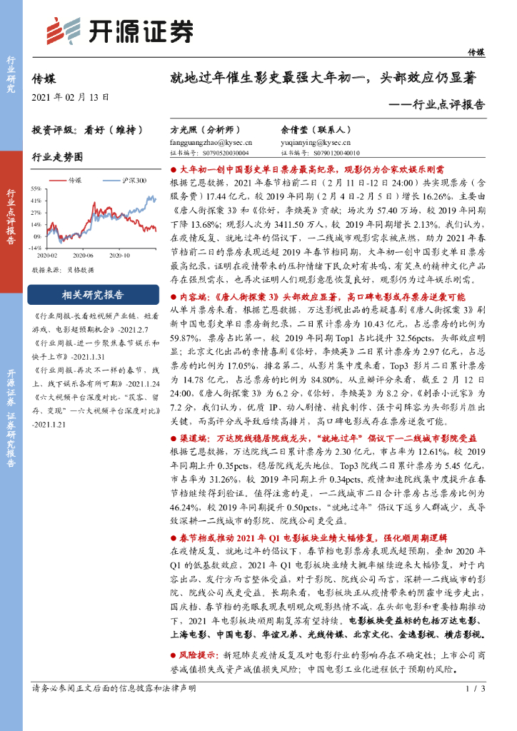 开源证券:传媒行业点评报告:就地过年催生影史最强大年初一,头部效应仍显著.pdf