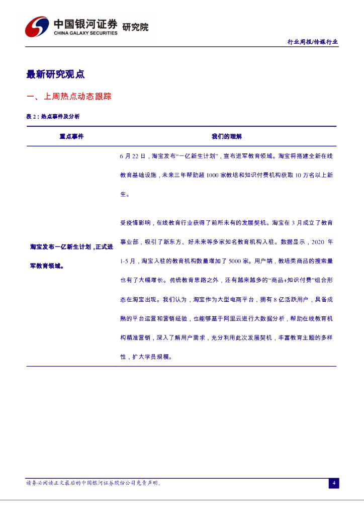中国银河:传媒行业周报:淘宝正式进军教育领域,浙江多措并举帮扶影视产业.pdf