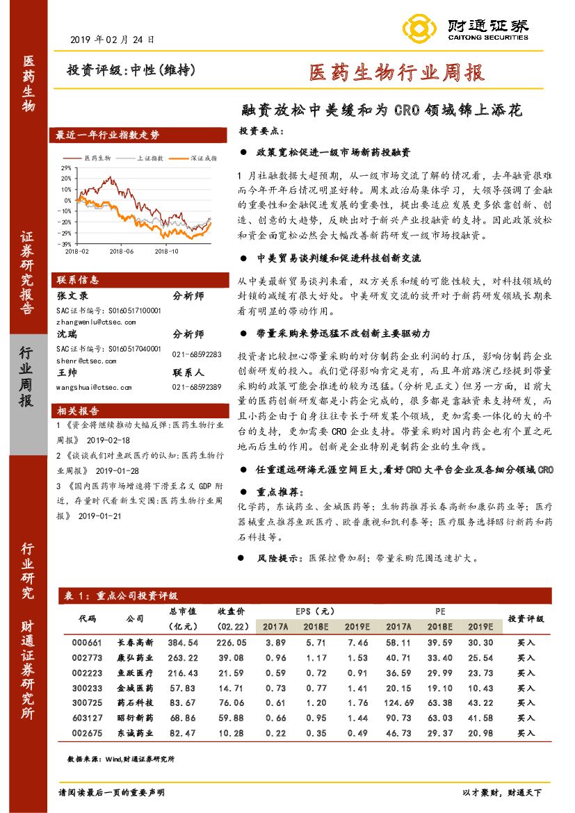 财通证券:医药生物行业周报:融资放松中美缓和为CRO领域锦上添花.pdf