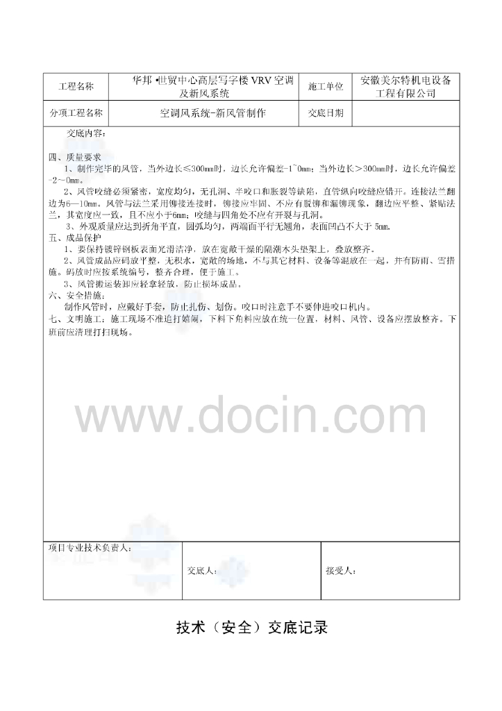华邦世贸中心暖通空调施工技术交底.pdf