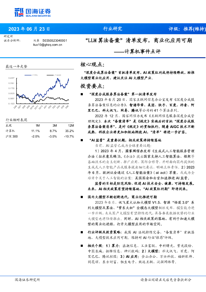 国海证券:计算机事件点评:“LLM算法备案”清单发布,商业化应用可期.pdf