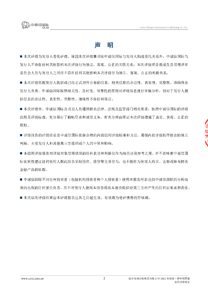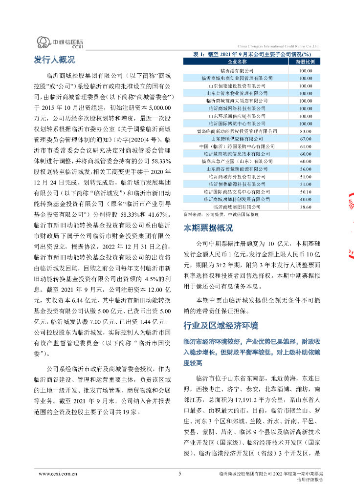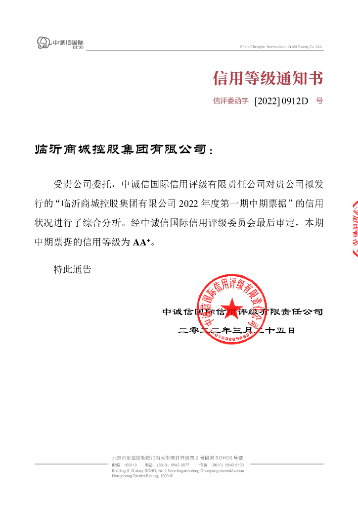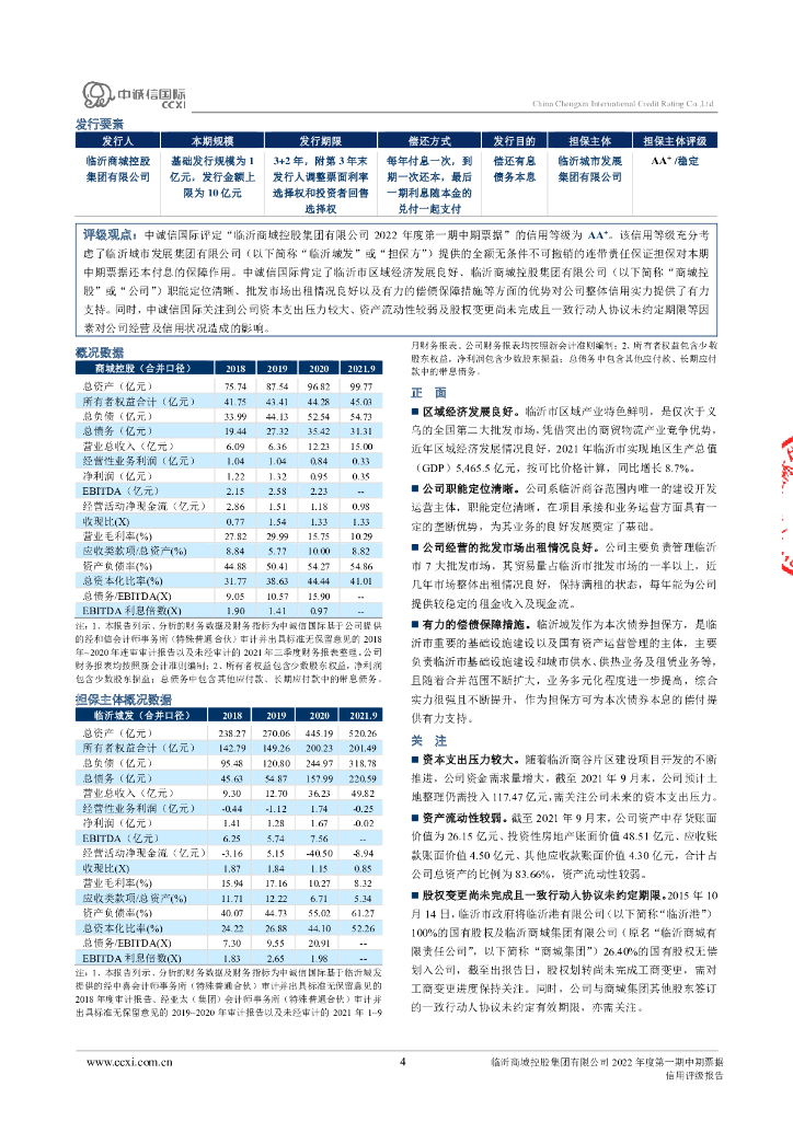 中诚信:临沂商城控股集团有限公司2022年度第一期中期票据信用评级报告.pdf