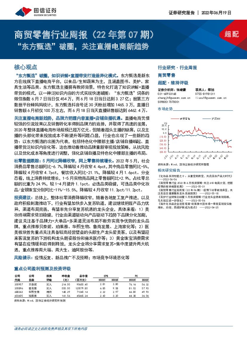 国信证券:商贸零售行业周报(22年第07期):“东方甄选”破圈,关注直播电商新趋势.pdf