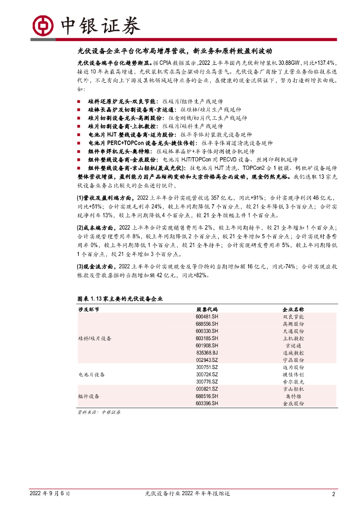 中银证券:光伏设备行业2022年半年报综述:行业高景气推动营收增长,技术进步驱动中上游盈利.pdf