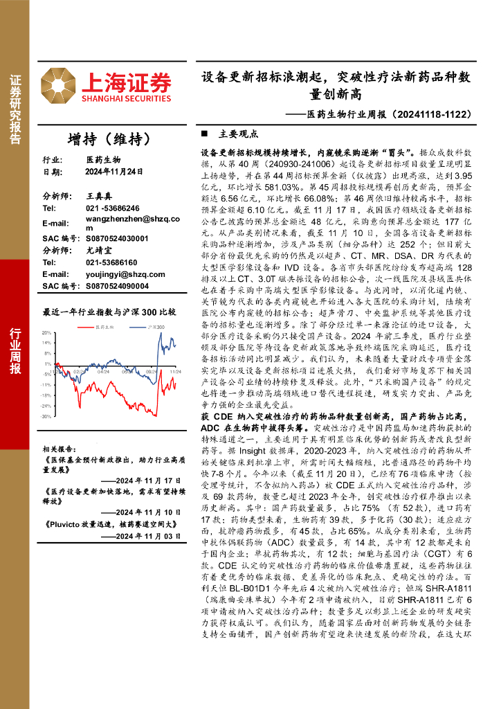上海证券:医药生物行业周报:设备更新招标浪潮起,突破性疗法新药品种数量创新高.pdf