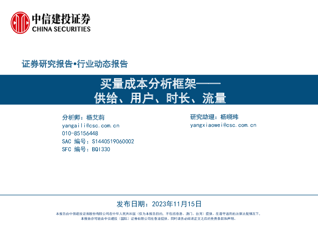 中信建投证券:2023买量成本分析框架报告——供给、用户、时长、流量.pdf