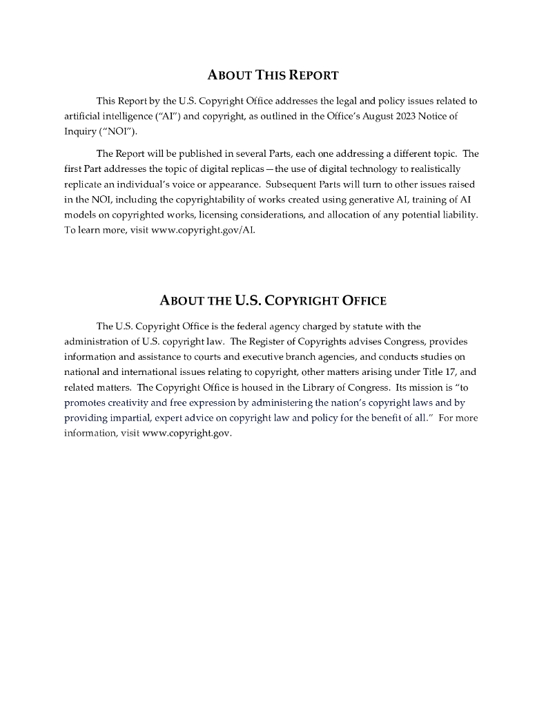 美国版权局:2024版权和人工智能 AI:数字复制品报告(英文版).pdf