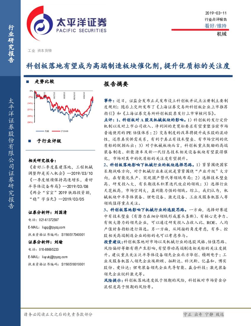 太平洋证券:机械行业点评报告:科创板落地有望成为高端制造板块催化剂,提升优质标的关注度.pdf