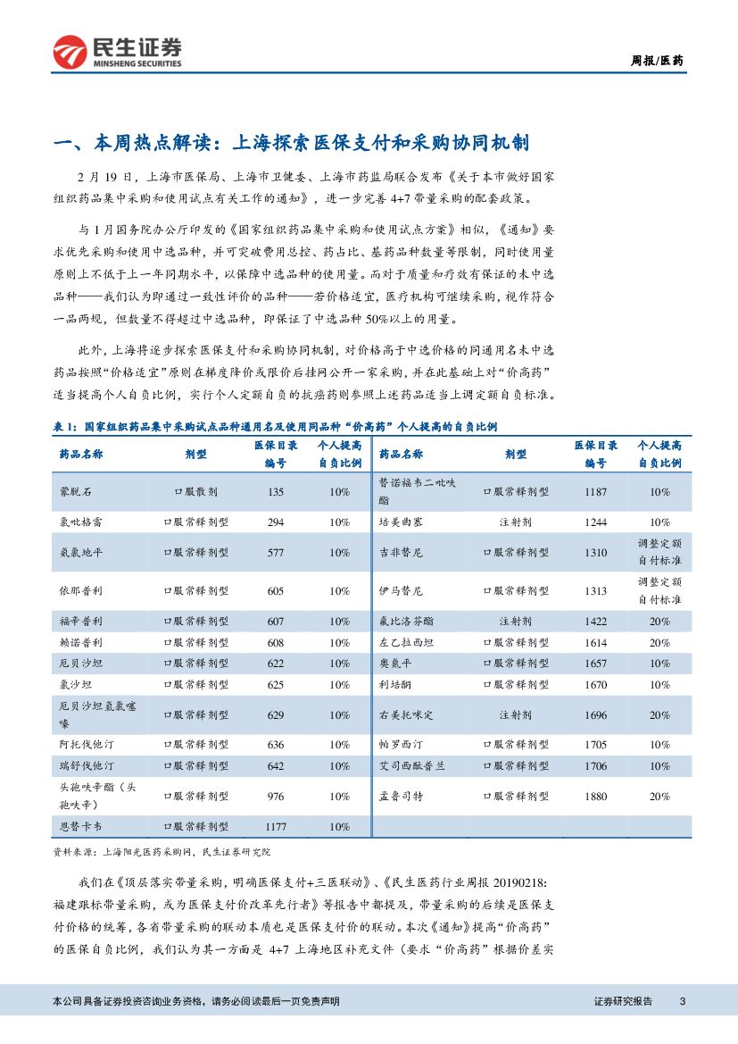民生证券:医药周报:上海完善医保采购协同,医保支付价或加速落地.pdf