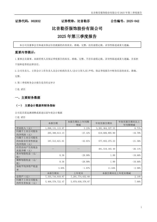 002832-比音勒芬:2025年三季度报告.pdf