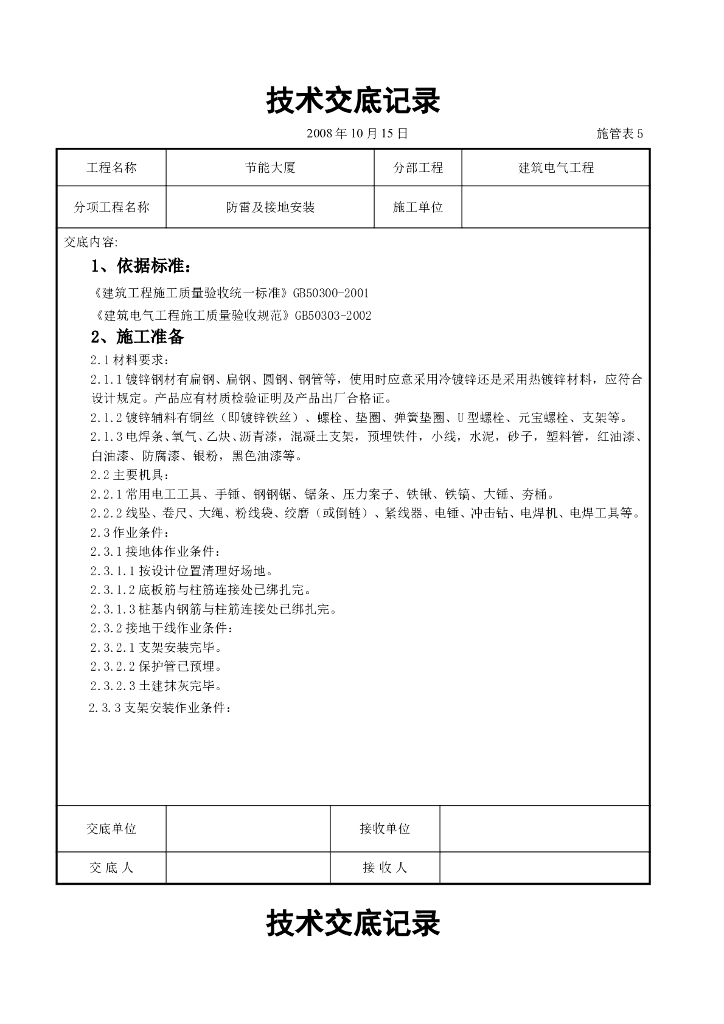 防雷及接地安装交底记录.doc