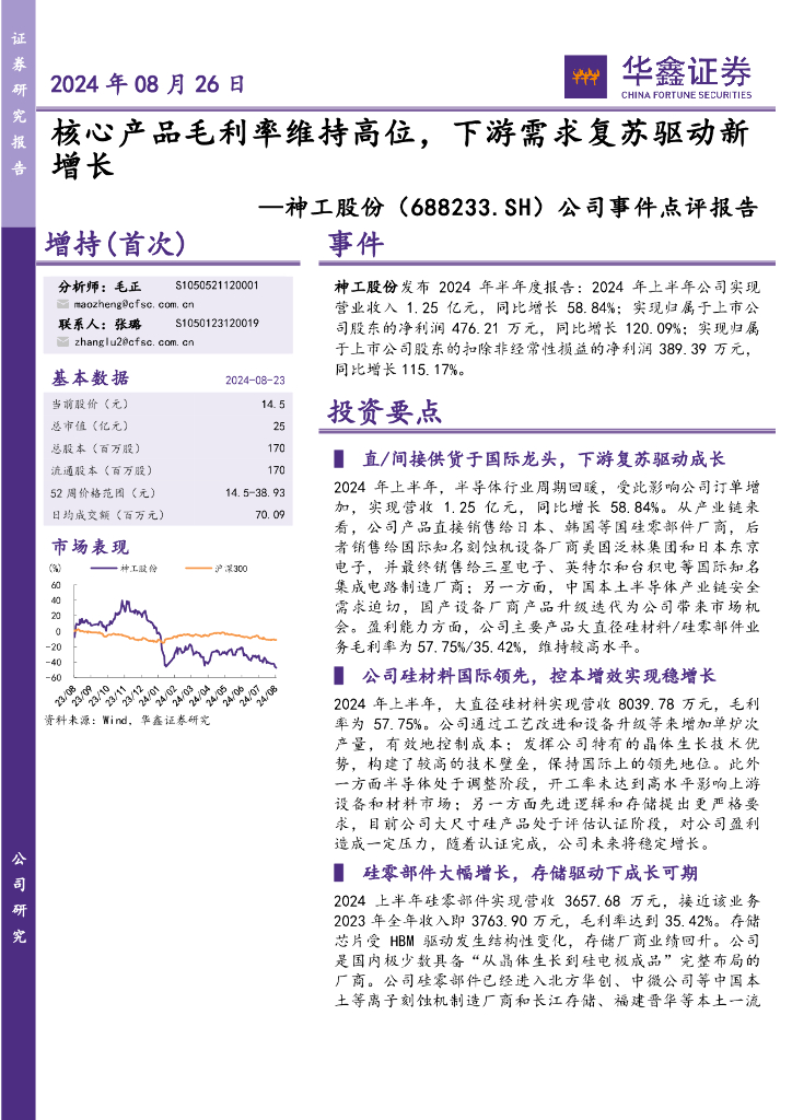 华鑫证券:神工股份(688233)-公司事件点评报告:核心产品毛利率维持高位,下游需求复苏驱动新增长.pdf