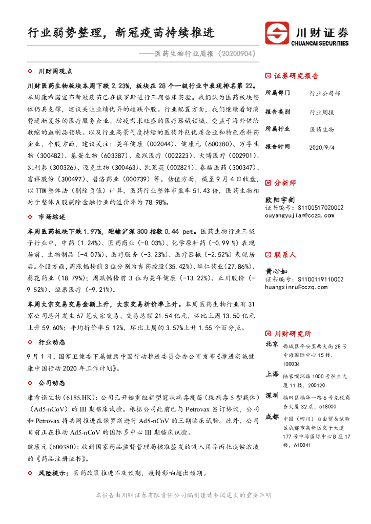 川财证券:医药生物行业周报:行业弱势整理,新冠疫苗持续推进.pdf