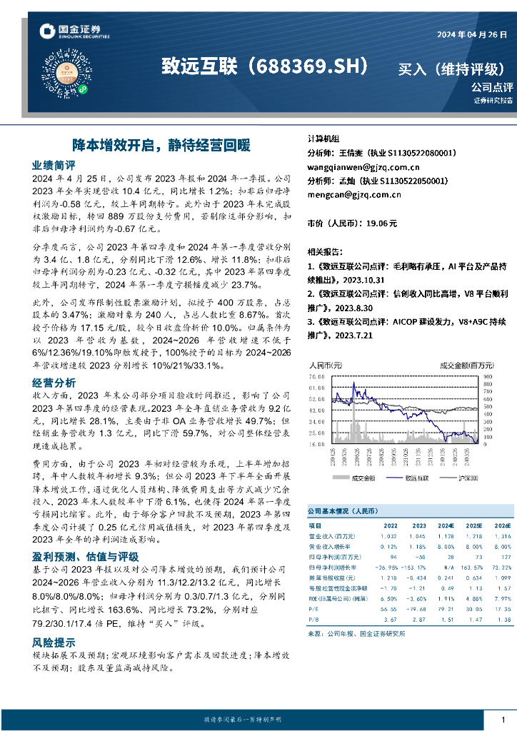 国金证券:致远互联(688369)-降本增效开启,静待经营回暖.pdf