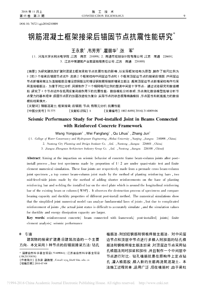 钢筋混凝土框架接梁后锚固节点抗震性能研究.pdf