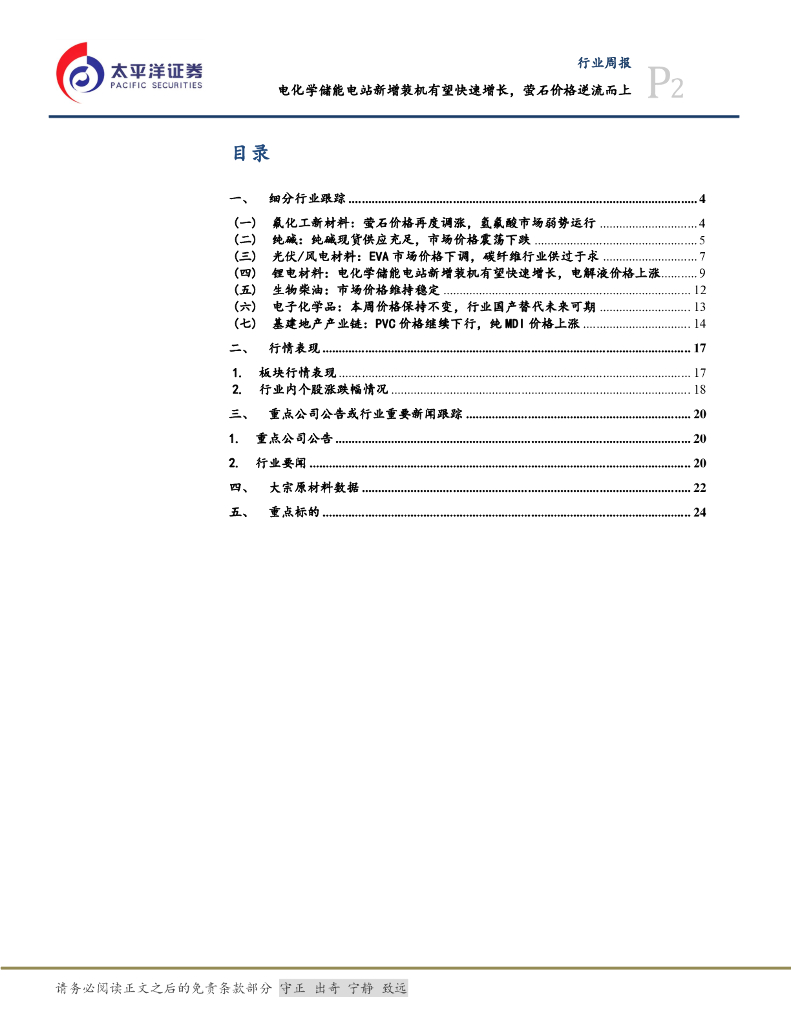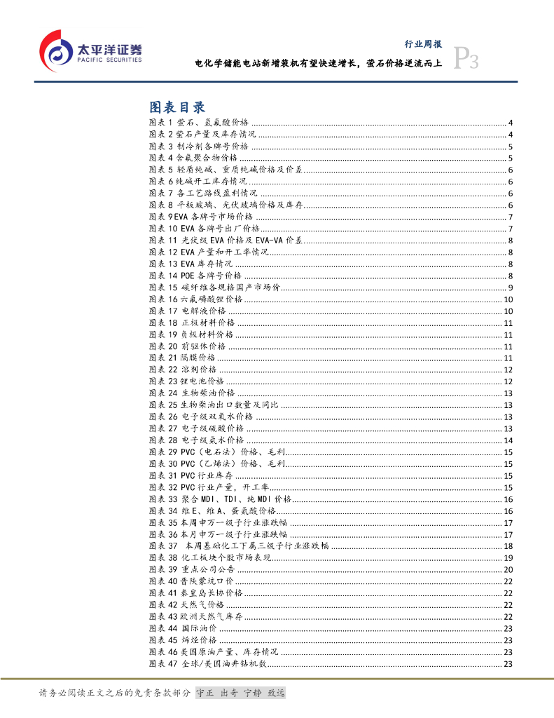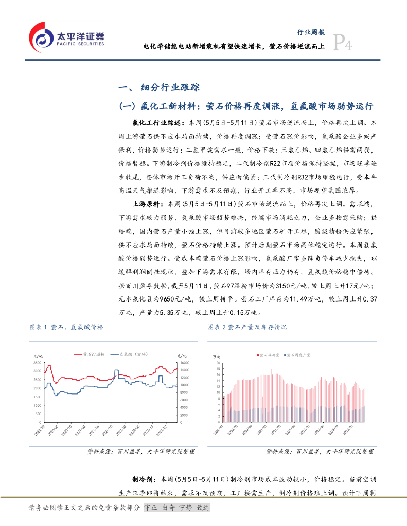 太平洋证券:化工&新材料行业周报:电化学储能电站新增装机有望快速增长,萤石价格逆流而上.pdf