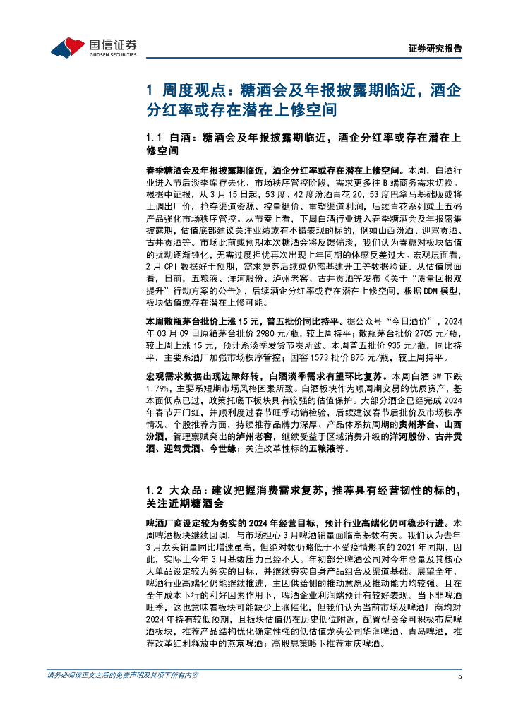 国信证券:食品饮料周报(24年第9周):糖酒会及年报披露期临近,酒企分红率或存在潜在上修空间.pdf