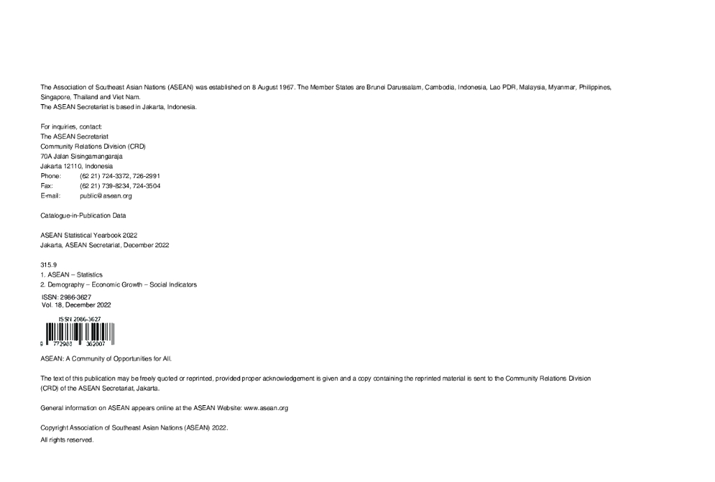 东盟共同体统计体系(ACSS):2022年东盟统计年鉴报告(英文版).pdf