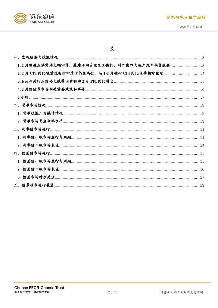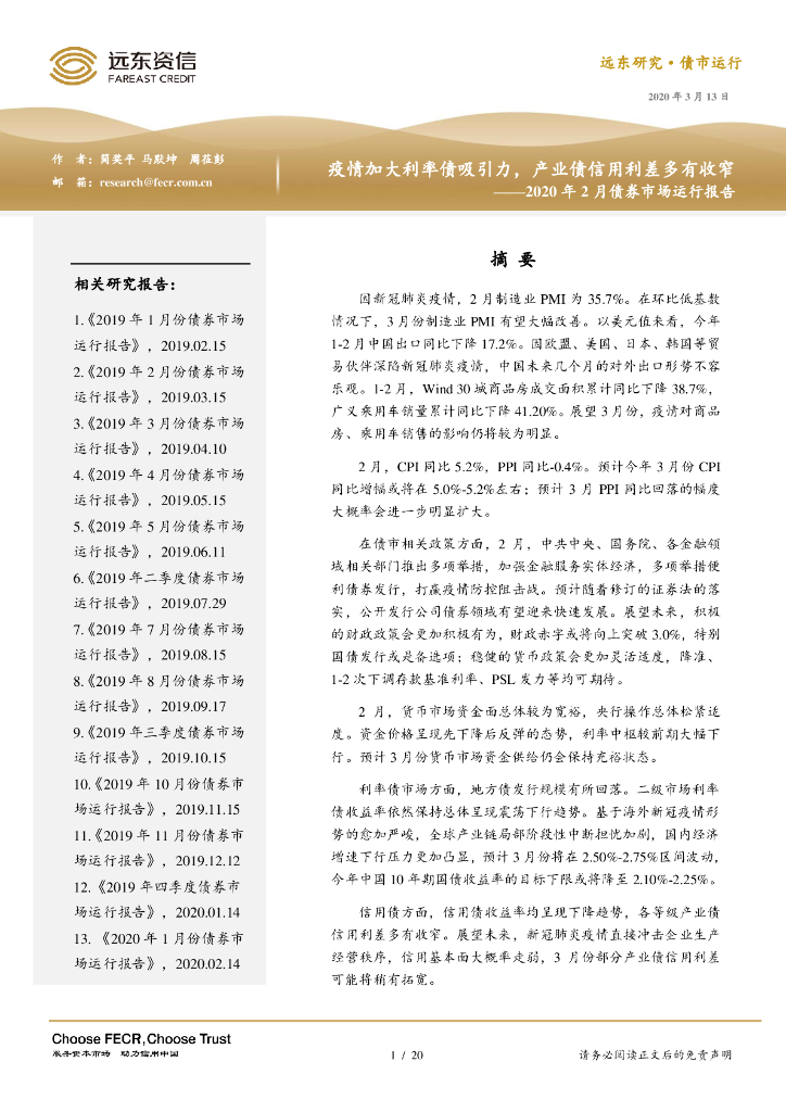 远东资信:疫情加大利率债吸引力,产业债信用利差多有收窄——2020年2月债券市场运行报告.pdf