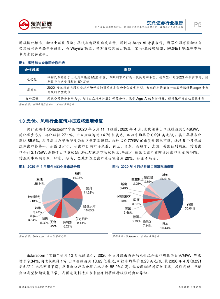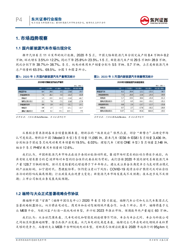 东兴证券:电力设备与新能源行业月报(2020年6月):国内新能源汽车市场出现分化,福特与大众牵手合作.pdf