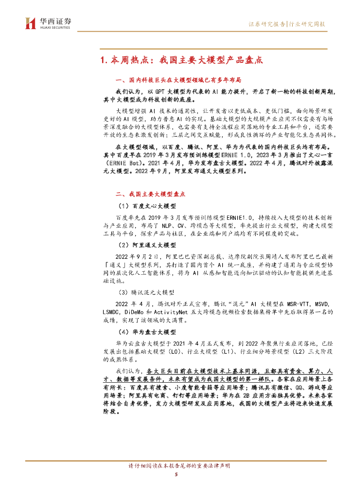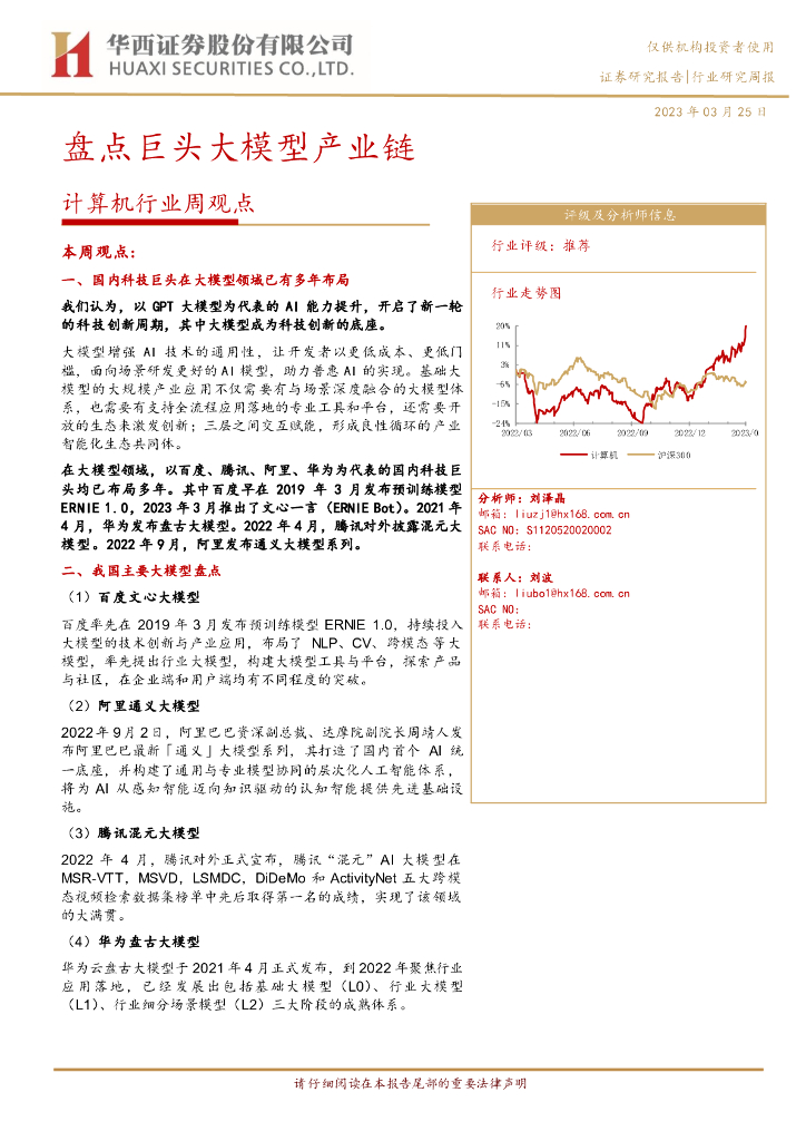 华西证券:计算机行业周观点:盘点巨头大模型产业链.pdf