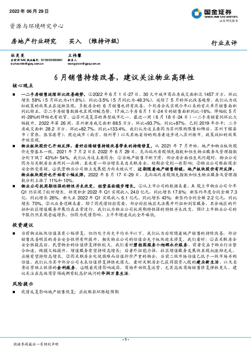 国金证券:房地产行业研究:6月销售持续改善,建议关注物业高弹性.pdf