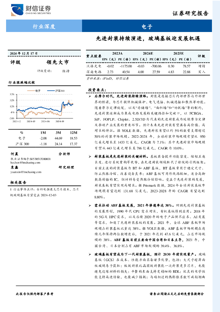 财信证券:电子行业深度:先进封装持续演进,玻璃基板迎发展机遇.pdf