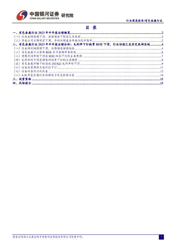 中国银河:有色金属行业2023年半年报业绩回顾:业绩已至底部,静待需求复苏带动行业反转.pdf