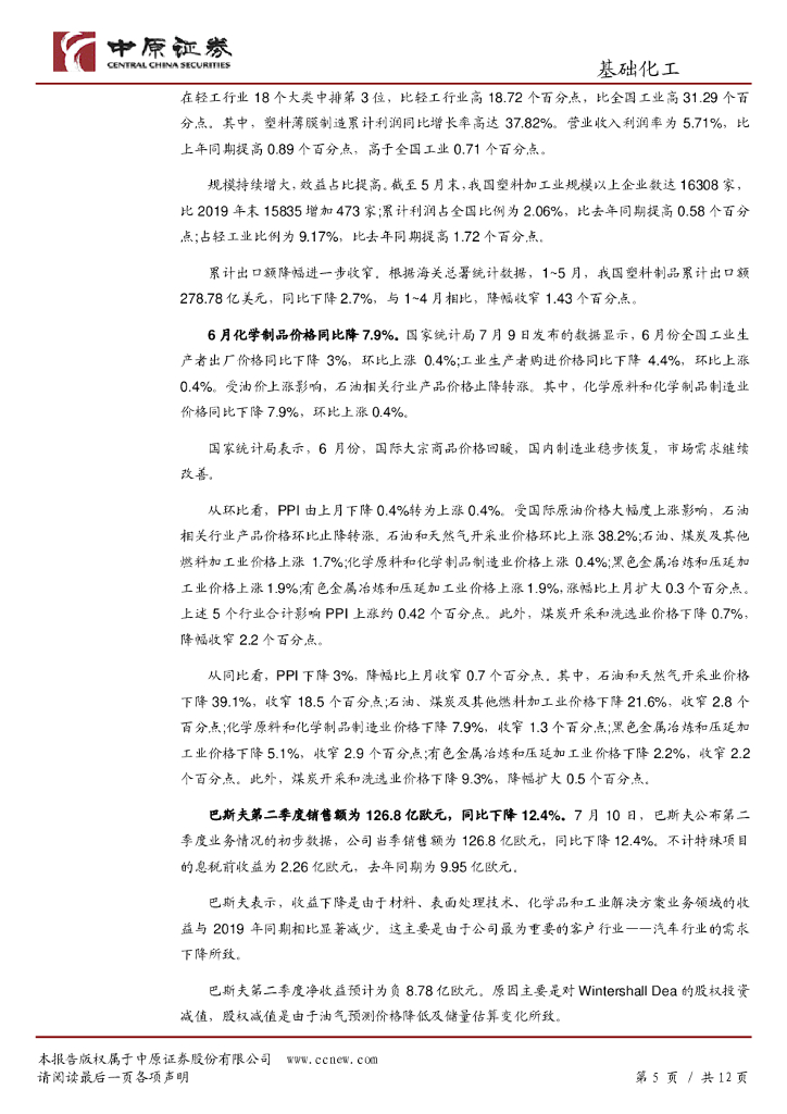 中原证券:基础化工行业月报:化工品价格小幅回调,关注农化及维生素板块.pdf