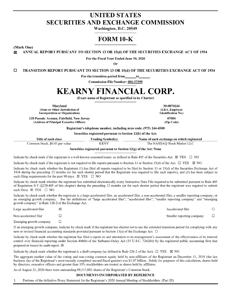 Kearny Financial Corp.(KRNY)2020财年年度报告(英文版).pdf
