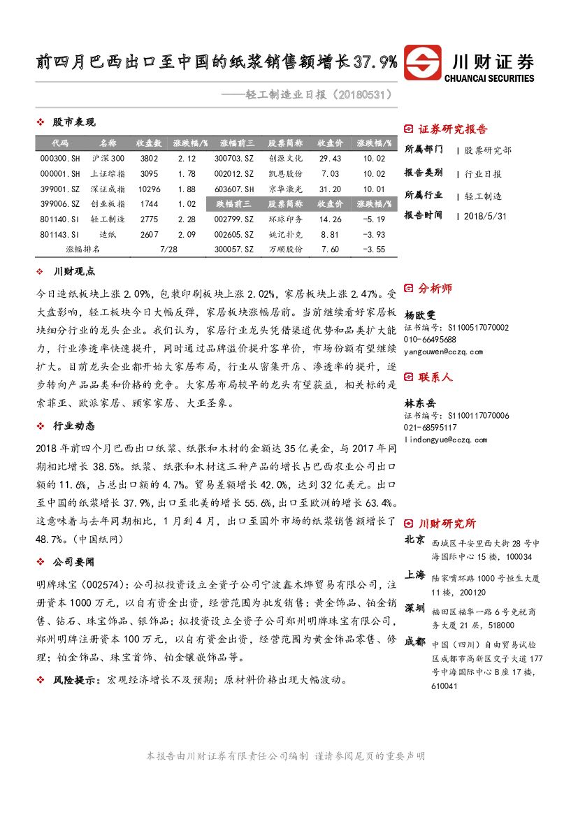 川财证券:轻工制造业日报:前四月巴西出口至中国的纸浆销售额增长37.9%.pdf