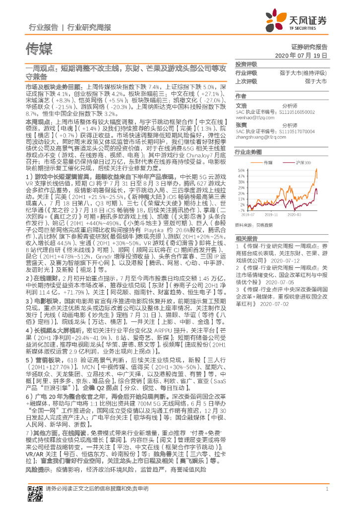 天风证券:传媒一周观点:短期调整不改主线,东财、芒果及游戏头部公司等攻守兼备.pdf