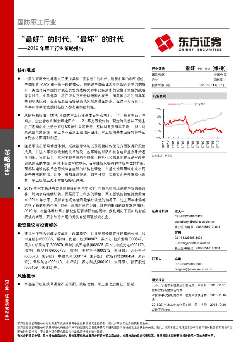 东方证券:2019年军工行业策略报告:“最好”的时代,“最坏”的时代.pdf